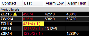 Alarm High sets a superior limit of price for a given contract. When an update comes, if the last price is higher than the value of alarm, the alarm is triggered. Alarm Low sets a inferior limit of price for a given contract. When an update comes, if the last price is lower than the value of alarm, the alarm is triggered. |